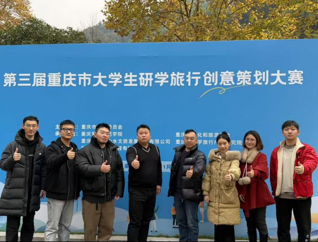 随后举行的重庆市大学生研学旅行创意策划大赛,以重庆金佛山丰富的自然与人文资源为背景,要求围绕“自然科普类”“素质拓展类”“文化体验类”及“中医药文化类”等主题,进行研学课程方案设计与研学手册编制。决赛涵盖理论知识机考、成果汇报与现场答辩三个环节,全面考察学生的理论素养、课程设计能力与实践应用能力。我院两支参赛队伍成功晋级决赛,并最终双双荣获三等奖。