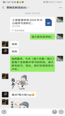获悉,新冠病毒疫情防控以来,工商管理学院强化了工作目标、明确工作任务,组织各教学系与党支部持续开展线上教研活动,扎实推进政治理论学习,借助雨课堂、腾讯会议、QQ语音等多种互联网工具,网络教学工作和政治学习,推进学院正常运转,全力以赴推进学校学院事业发展。