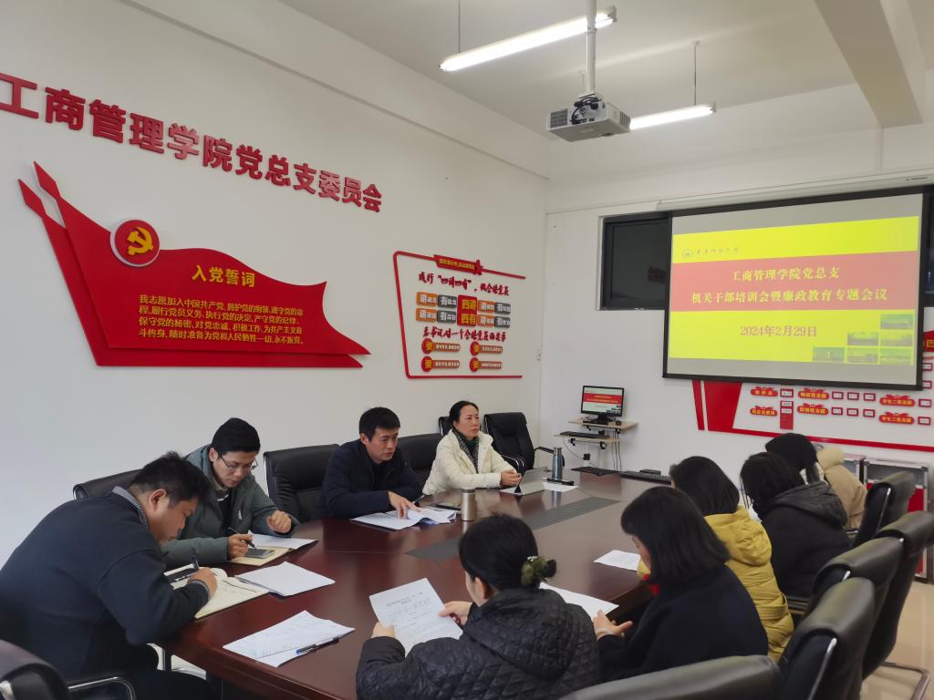 为进一步落实学校春季开学会议精神,2月29日,工商管理学院党总支在博学楼F310会议室,组织开展机关干部培训暨党风廉政教育专题会。会议由学院党总支书记李旭东主持,院长江燕玲、组织员刘星,党政办、教务办、实验中心干部参加了会议。