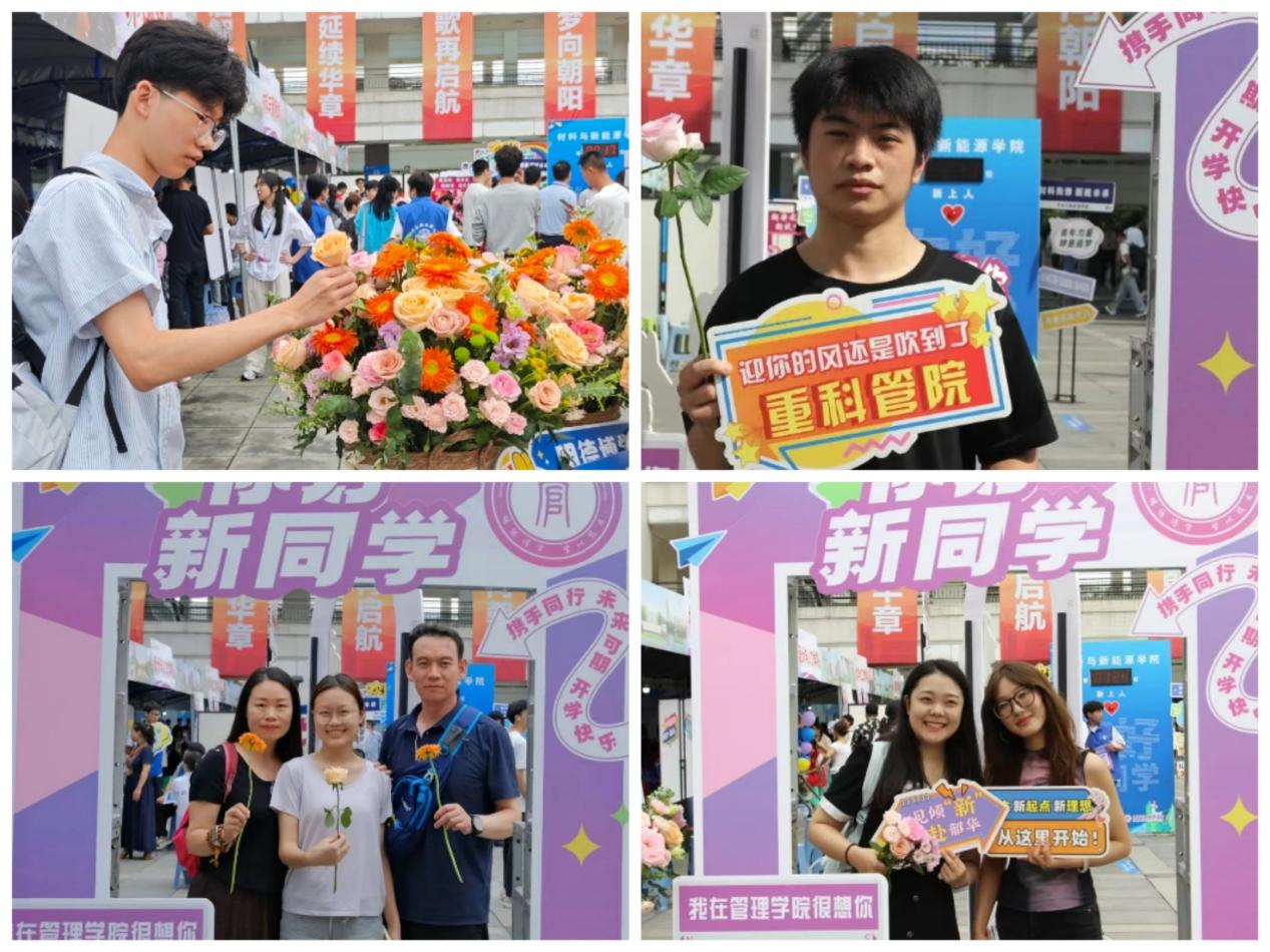 重重关爱彰使命,志愿护航暖新心。迎新期间,学院班子成员、各系主任、党支部书记、专业教师、辅导员及有关工作人员来到现场为新生及家长答疑解困。各志愿者热情洋溢,在学校南门志愿服务点、报到现场、宿舍楼栋等地方提供道路指引、行李搬运、资料审核、报到注册、拍照打卡等志愿服务,确保迎新工作井然有序。学工队伍全程守候、全力护航,引导新生核对信息,耐心解答新生和家长的各类疑问,积极协调解决报到过程中出现的各种问题,用温暖的笑容和贴心的服务,让新生和家长感受到学院的关怀与重视。现场更以一朵鲜花的赠礼,将“明德博学、管以致用”的院训凝于芬芳之中。