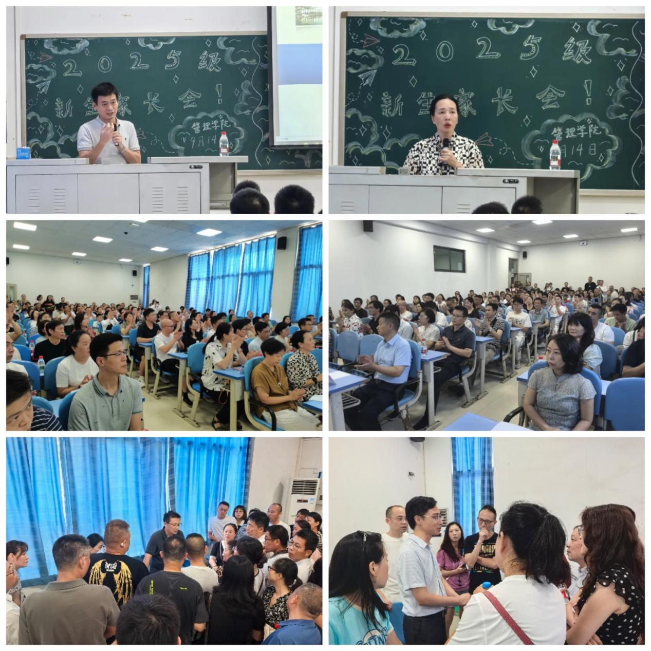 三全育人搭平台,师长引航启新途。迎新期间,学院深入开展“三全育人 从我做起”主题活动,召开2025级新生家长会,学院班子成员、各办公室负责人、系主任和专业任课教师代表,以及140余名新生家长参加了会议。学院党总支书记李旭东代表学院对2025级新生和家长表示欢迎,详细介绍学校、学院基本概况,对新生大学生活提出建议。院长江燕玲介绍了学院专业与科研、人才培养、学生教育、特色文化及取得的成绩等内容。各系主任就专业特色、主要课程、毕业条件、职业规划、人才培养方案等情况给家长做了分享,并给新生如何上好大学提出建议。各新生辅导员开展大学第一次班会,引导学生坚定理想信念,科学规划成长路径,快速适应大学生活。