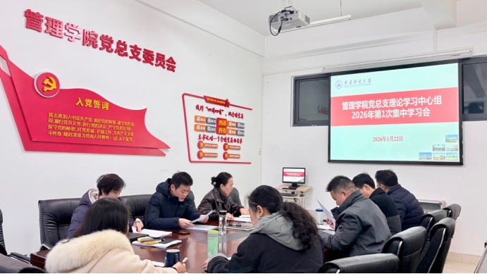 1月22日,管理学院党总支召开理论学习中心组2026年第一次学习会。会议由党总支书记李旭东主持,学院班子成员及党务干部参加了会议。