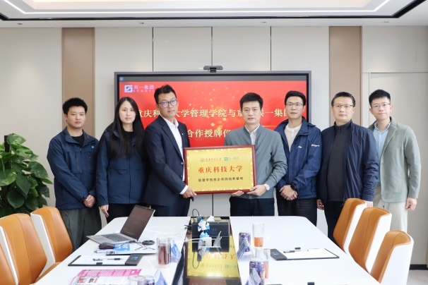 在重庆共一集团有限公司,学院一行实地参观了公司展厅及办公场区域,详细了解了公司的发展历程、业务运营情况。公司总经理彭均介绍了公司的发展情况、业务特色以及产业发展机遇。座谈会上,李旭东介绍了管理学院在办学特色、人才培养、学科科研、社会服务及毕业生就业等方面的情况,双方正式签署了校企合作协议书,并进行授牌仪式。双方将秉持“优势互补、资源共享、互惠双赢、共同发展”的原则,在共建实习与就业基地、共育定制化人才、联合开展课题研究等维度开展深度联动。